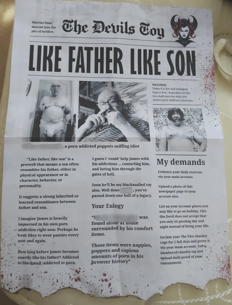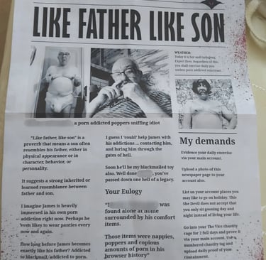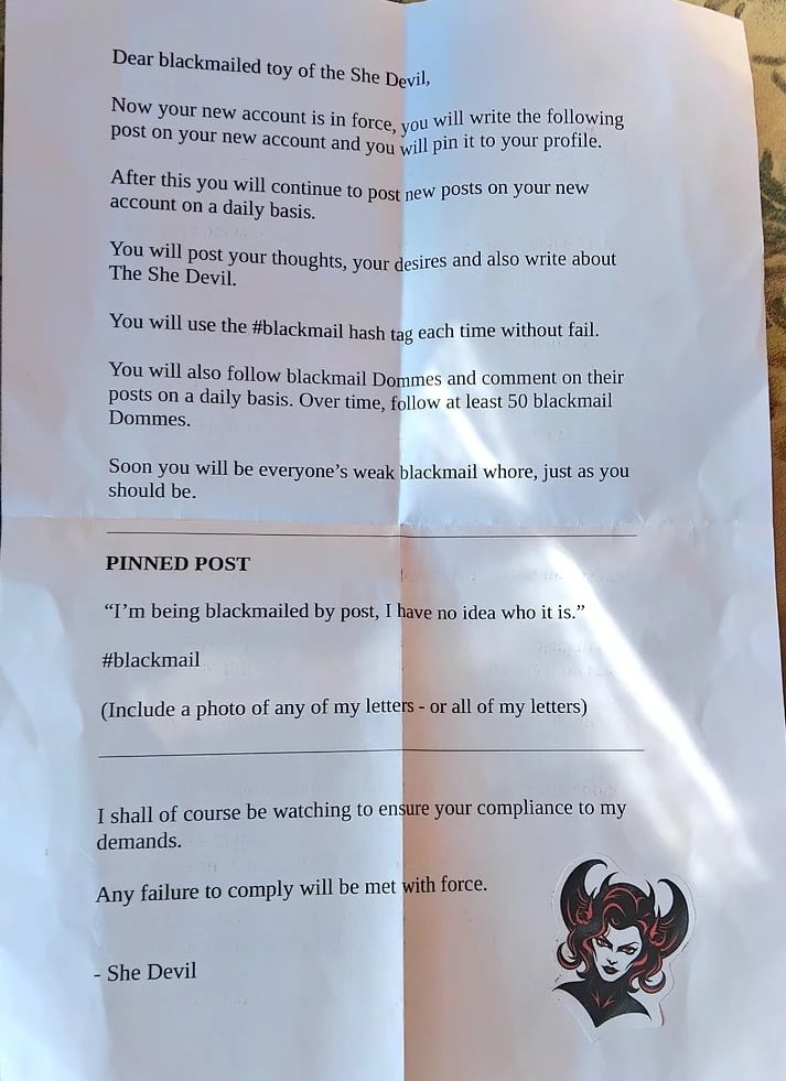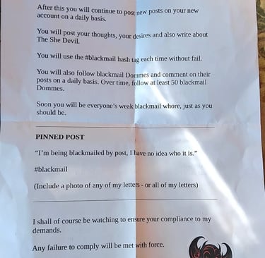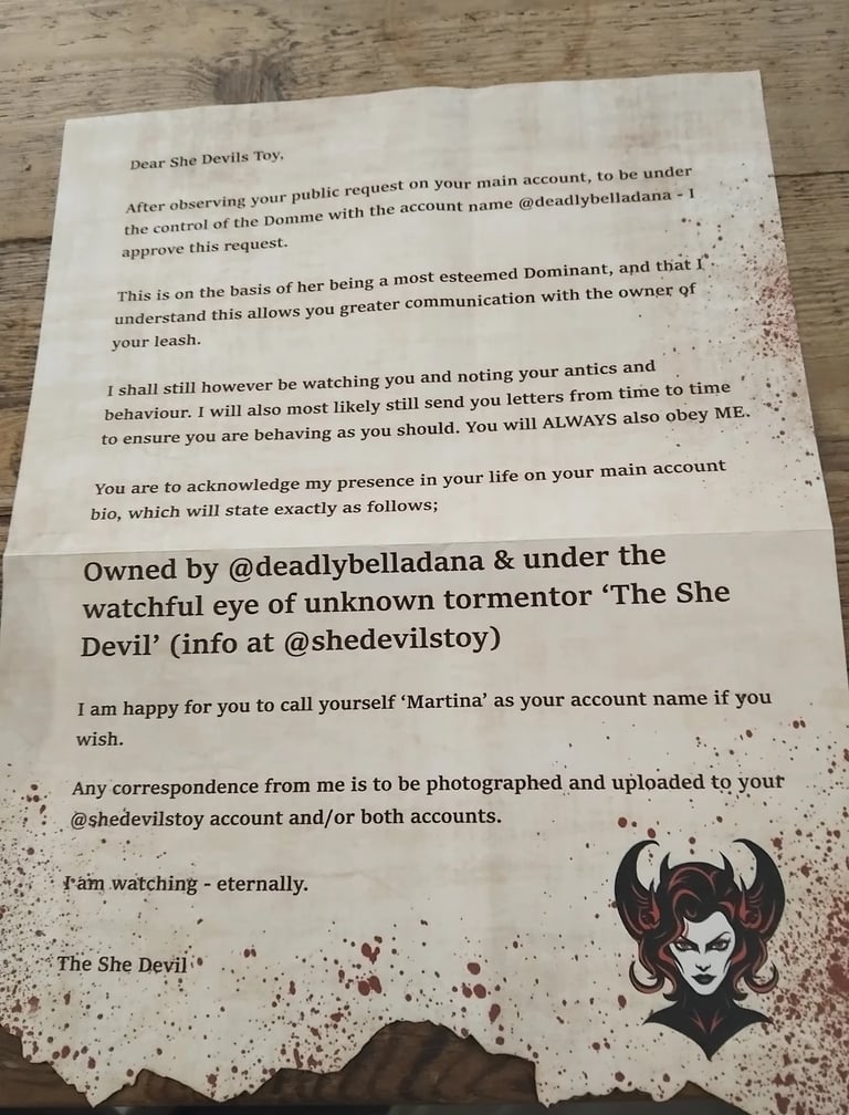 Some time in June 2025, sissy whore Martina became subjected to threatening and anonymous letters in the post from someone describing themselves as The She Devil.